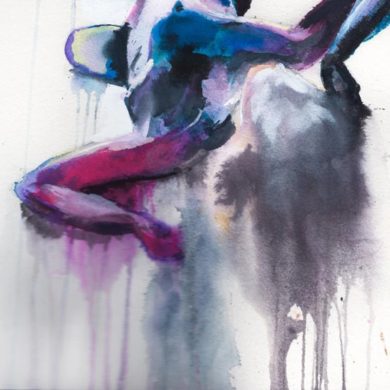 Абстрактная картина с изображением обнаженной женщины, акварель, Эр...