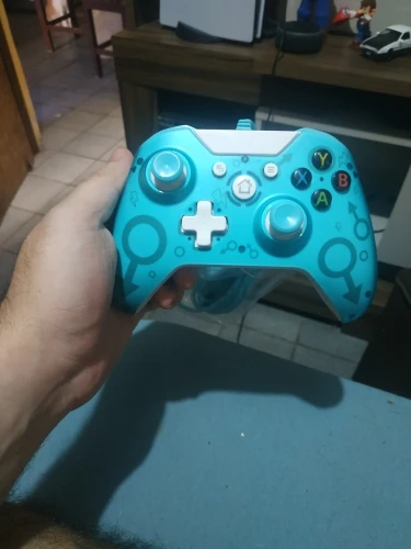 Контроллер получил за 7 дней Немного света в руках, но выглядит хорошо. Наклейки сильнее официальных джойпадов. Кабель достаточно длинный.