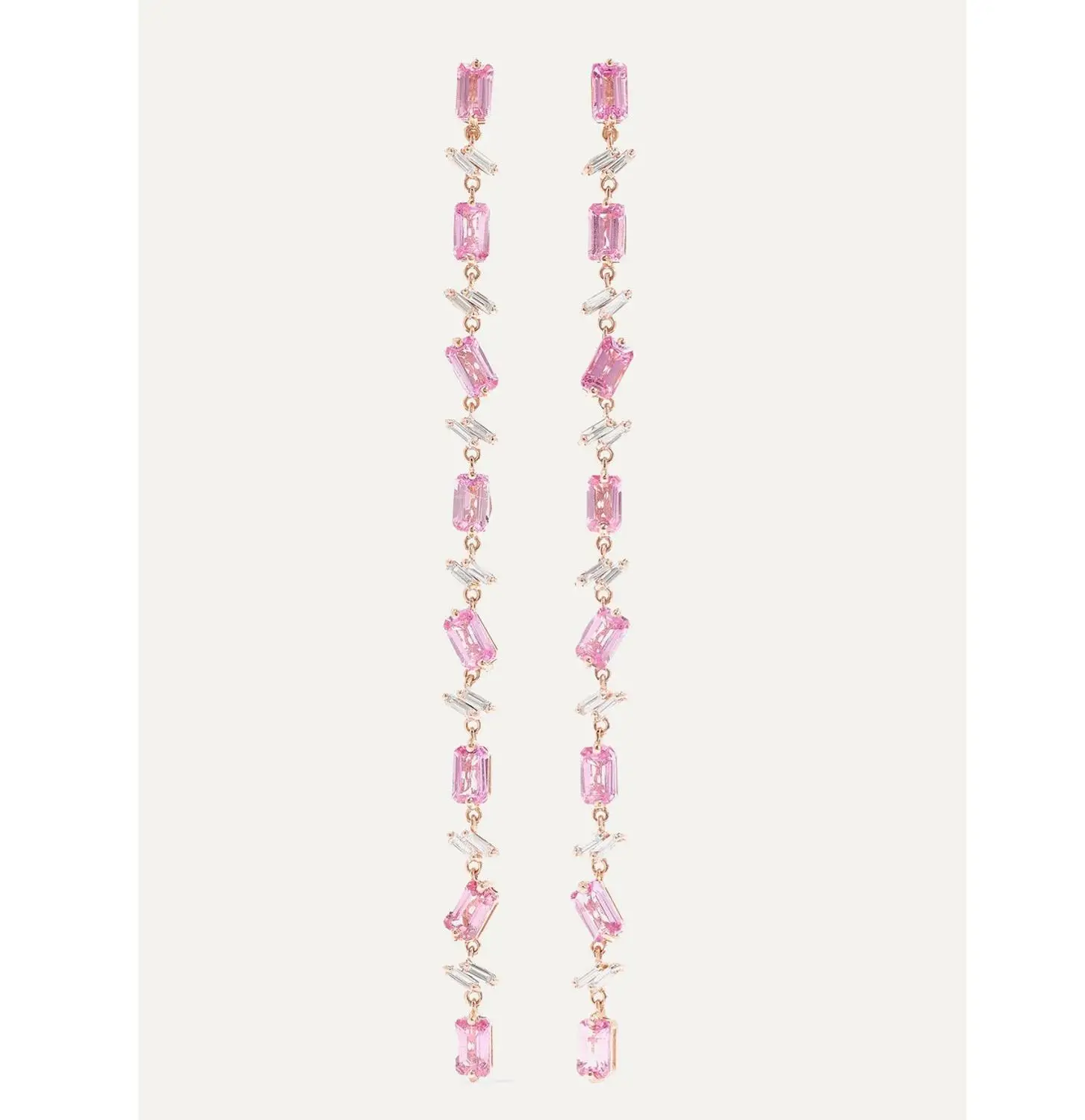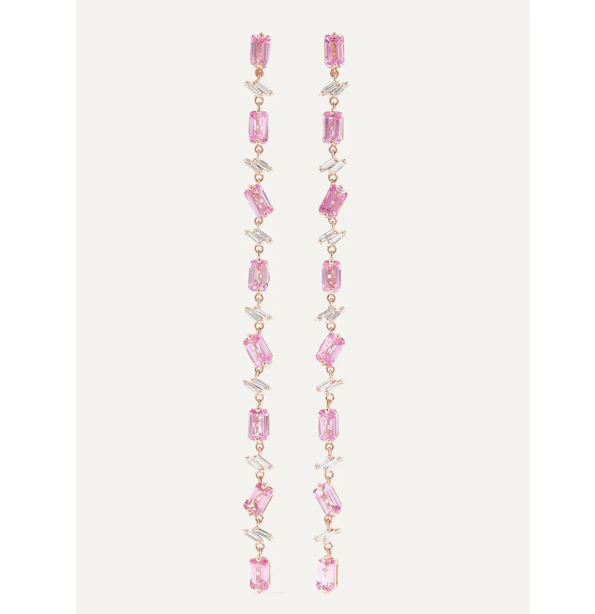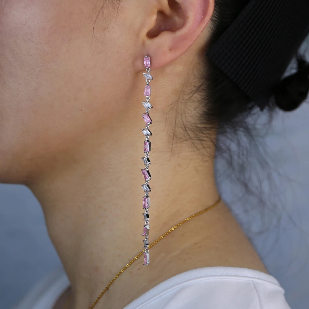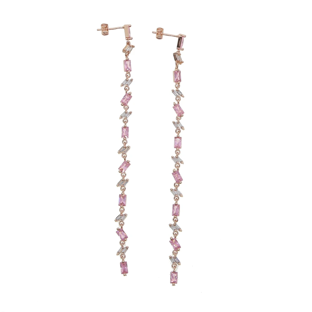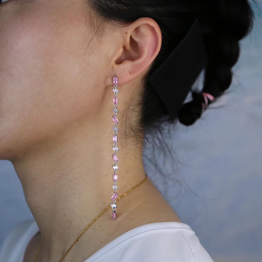 Высококачественные длинные висячие женские серьги со льдом из багета с фианитами розового и белого цвета