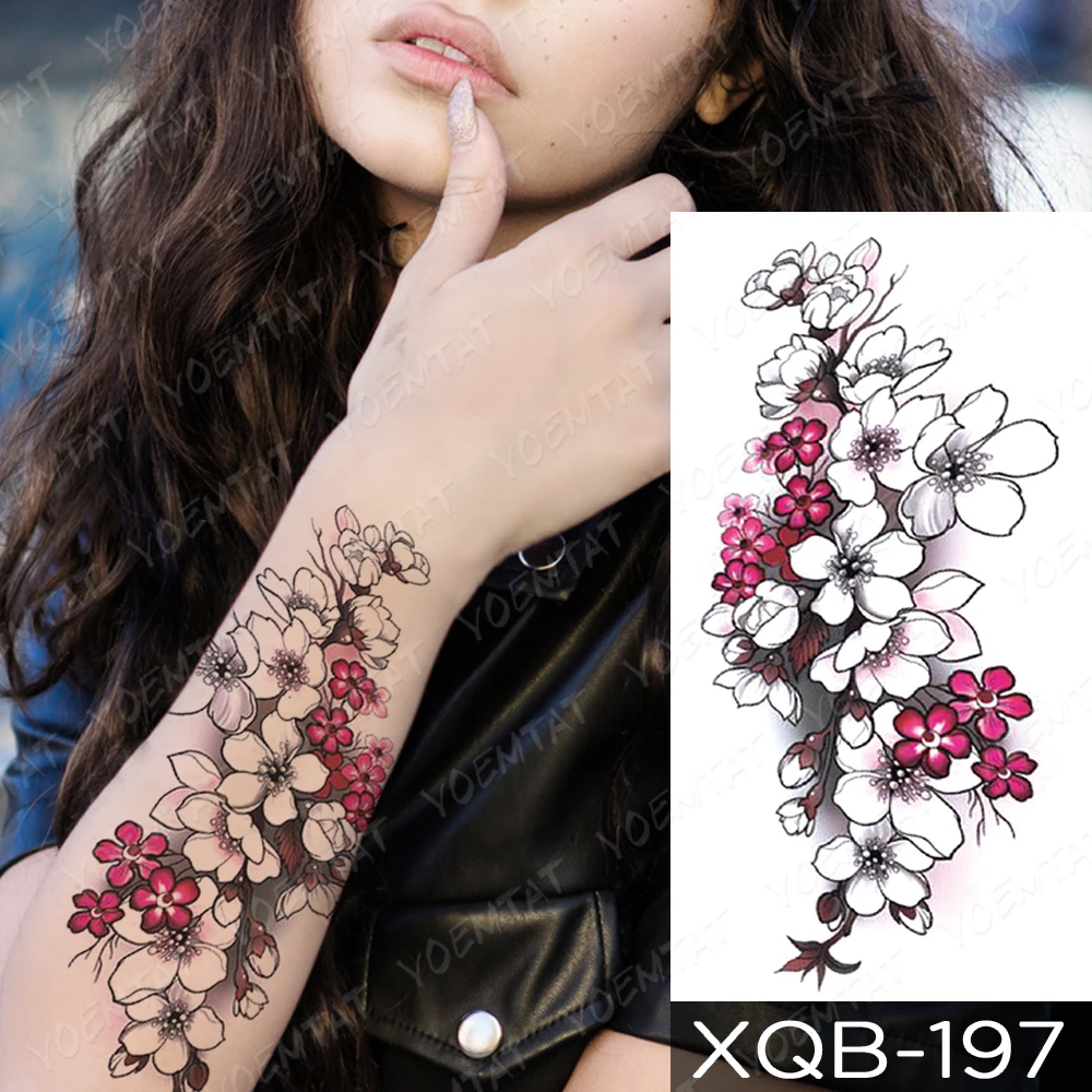 Водостойкая Временная тату-наклейка Сакура сливы цветы тату линия минимализм боди арт рука Поддельные рукава тату для женщин и мужчин