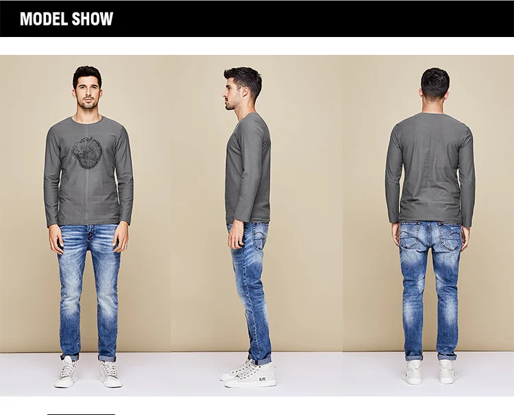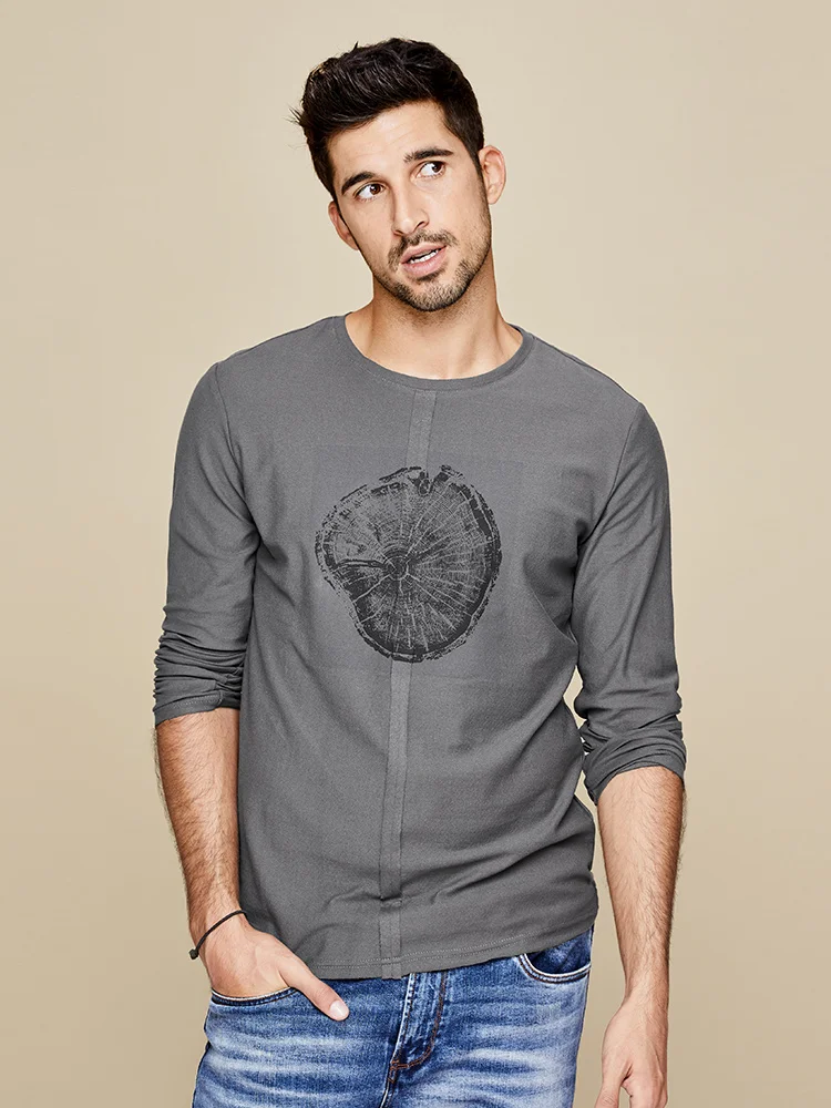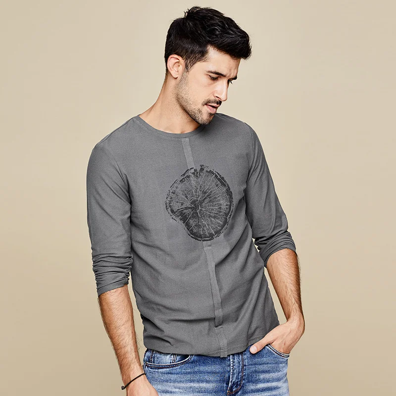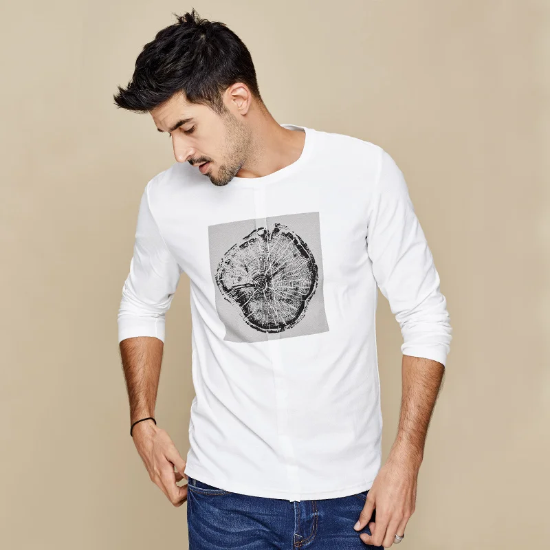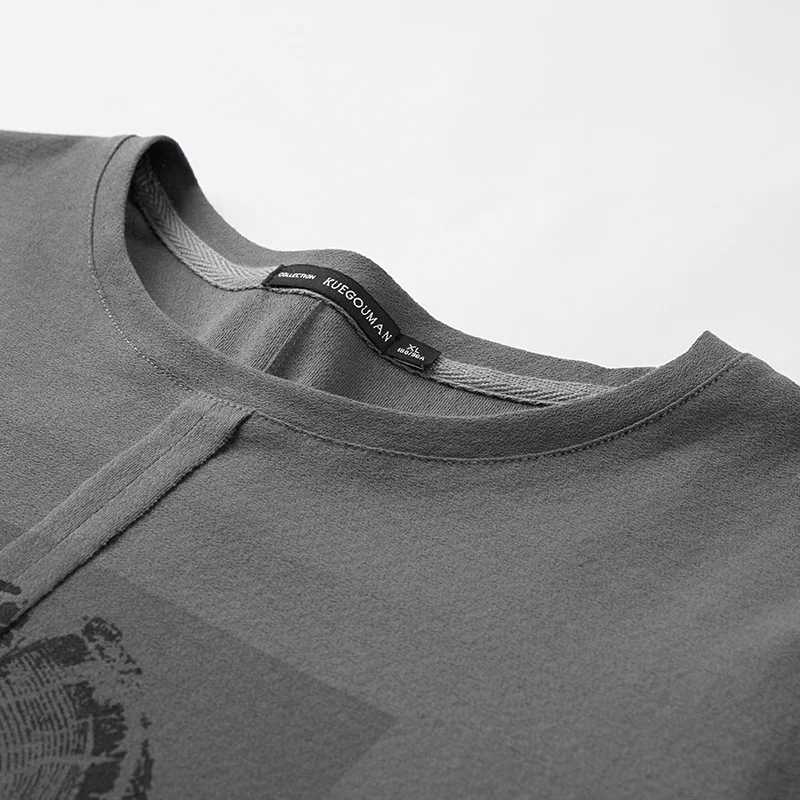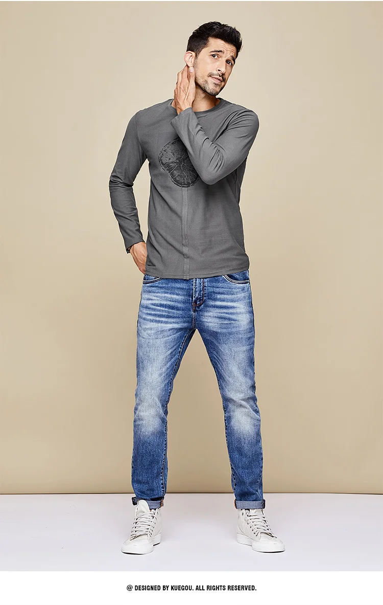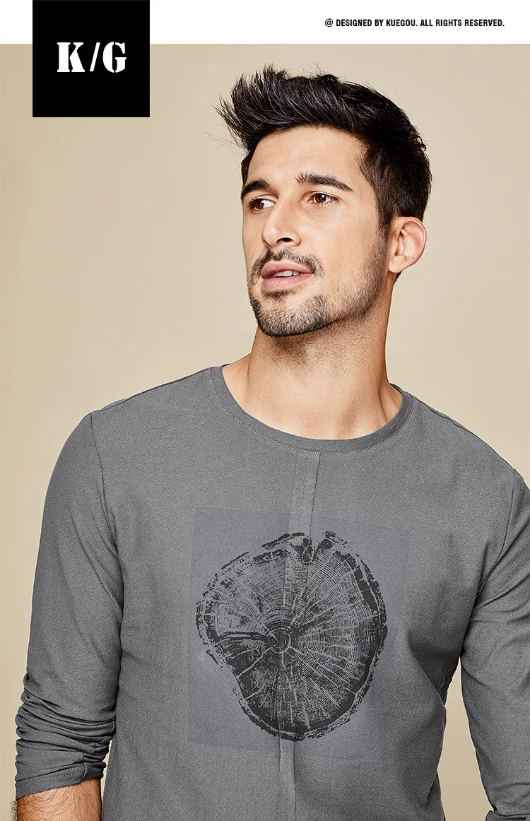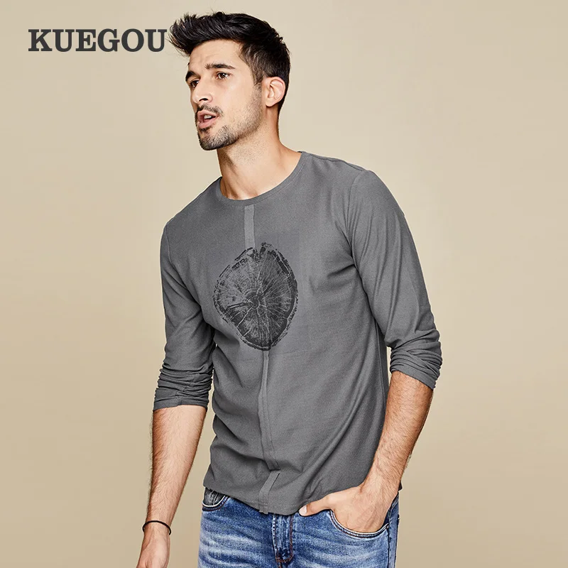 Мужская футболка с длинным рукавом KUEGOU, футболка из хлопка и спандекса с принтом, размер UT-0325, весна