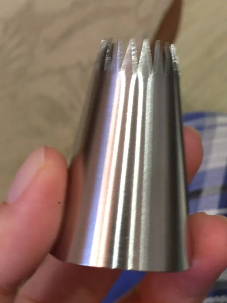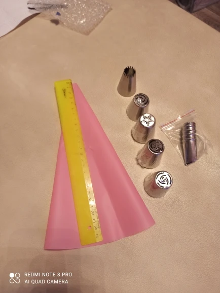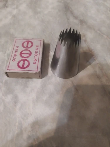Насадка оказалась оооочень большой :D но это моя ошибка, размеры не посмотрела. На фото для сравнения насадка стандартного маленького размера. Сама насадка хорошая, швы проработаны хорошо, заусенцев нет. С ней получились эклеры! Почему-то до этого не получались такими красавчиками.. Заказ пришёл вместе с другими заказами, посылка шла где-то месяц
