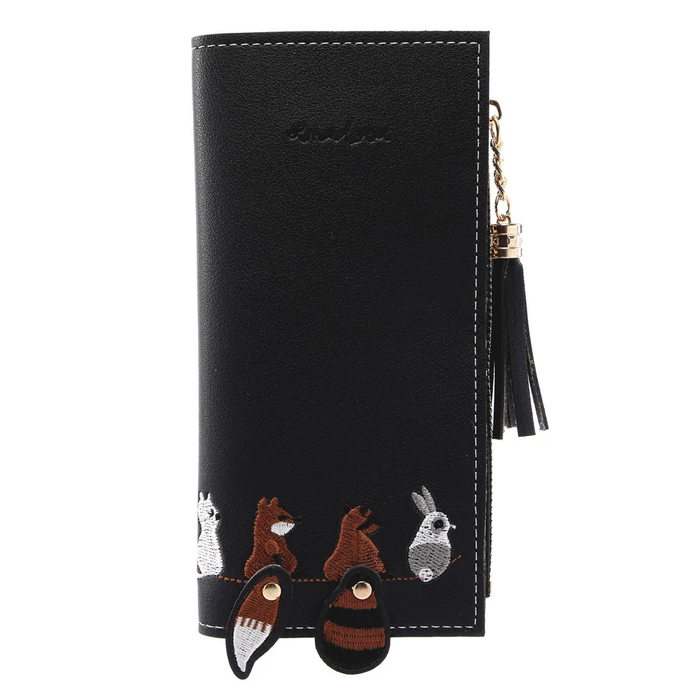 Женский Длинный кошелек с лисой кошкой, кошелек с кисточками для монет, визитница, сумка, посылка