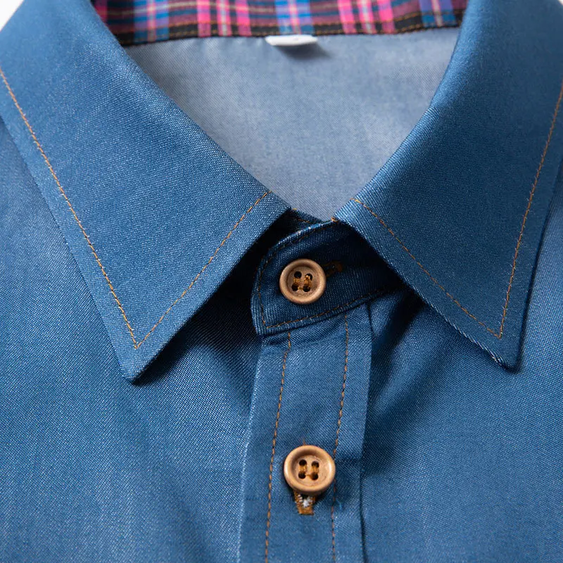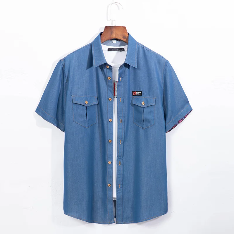 Рубашка мужская джинсовая с коротким рукавом, модная повседневная свободная ковбойская блуза из денима, брендовая однотонная, большие размеры 5XL 6XL, лето 2022