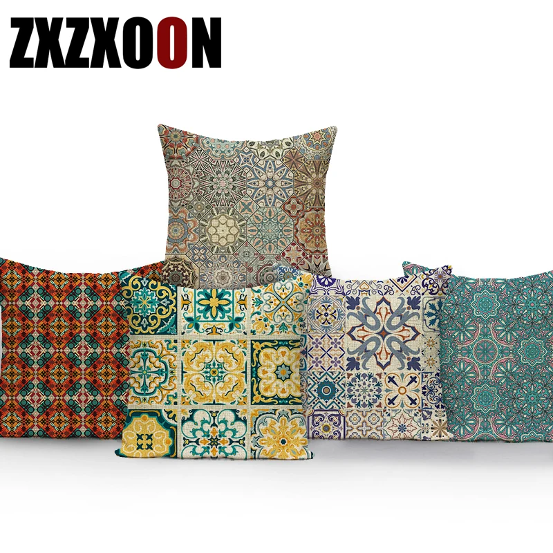 Наволочка для декоративных подушек, квадратная, из геометрической формы, в стиле бохо полиэстера, с изображением цветов, мандалы, для дивана, гостиной