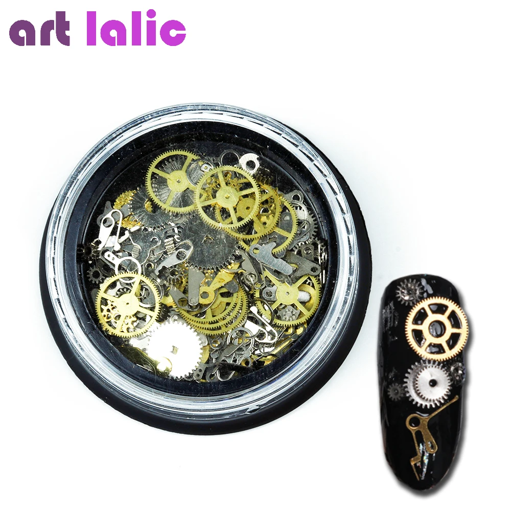 1 коробка, металлические шестерни, кусочки, подвески-гвоздики, 3D DIY смешанные наклейки в стиле панк, стимпанк для украшения ногтей
