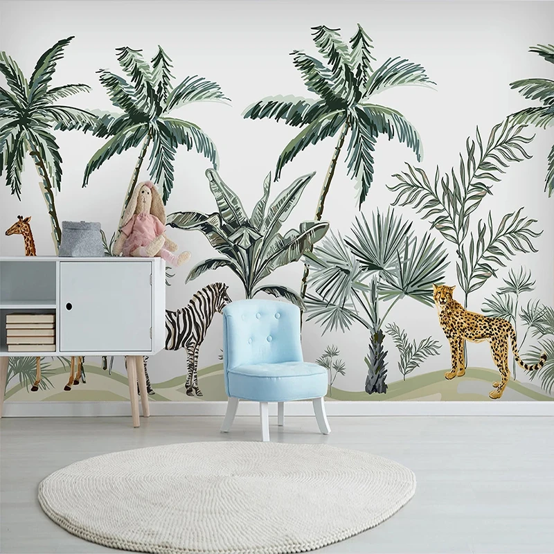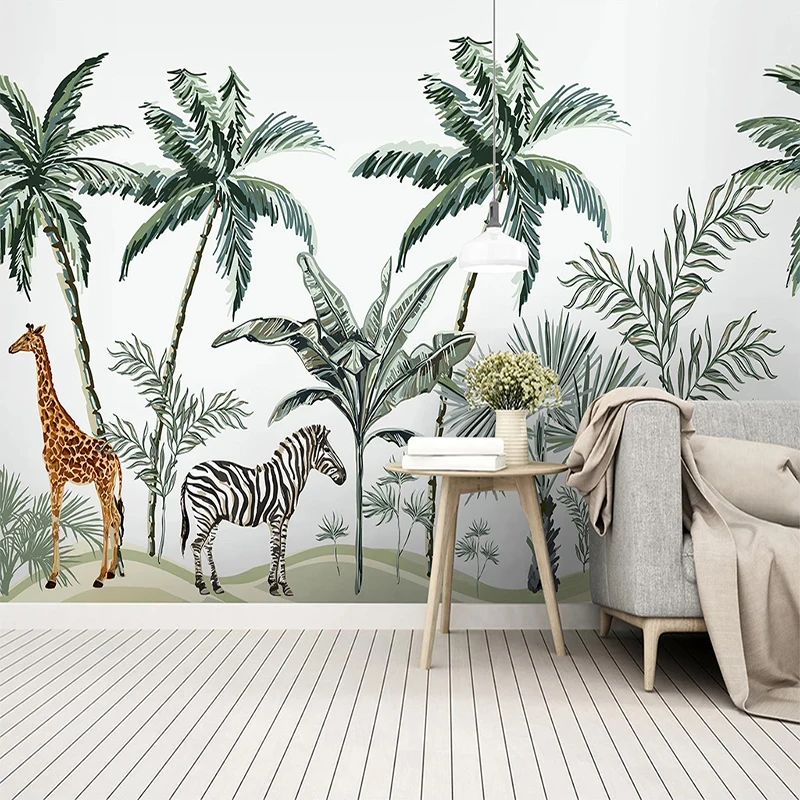 Фотобумага на заказ, объемная настенная бумага с изображением животных, тропических банановых деревьев, Листьев, большая роспись, украшение для спальни, кабинета, настенная живопись