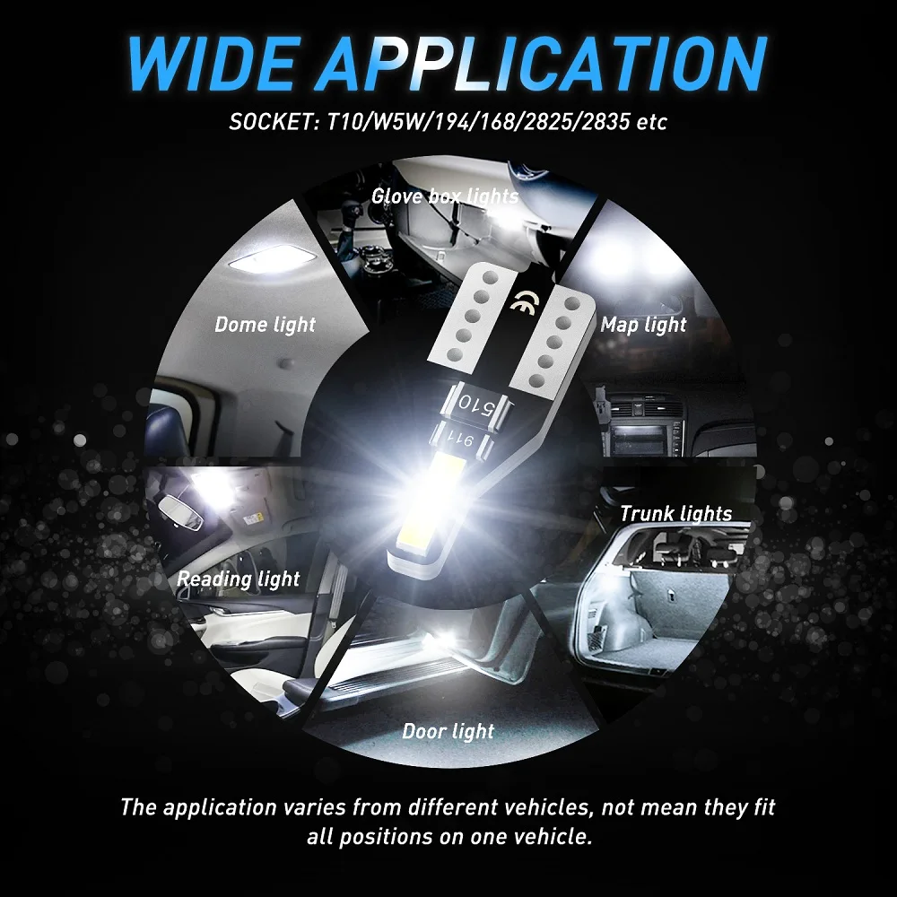 Подходит для большинства моделей автомобилей с гнездом T10 / T15 / 194 / 168 / 158 / 12256 / 12961 / 2821 / 825 / W5W.