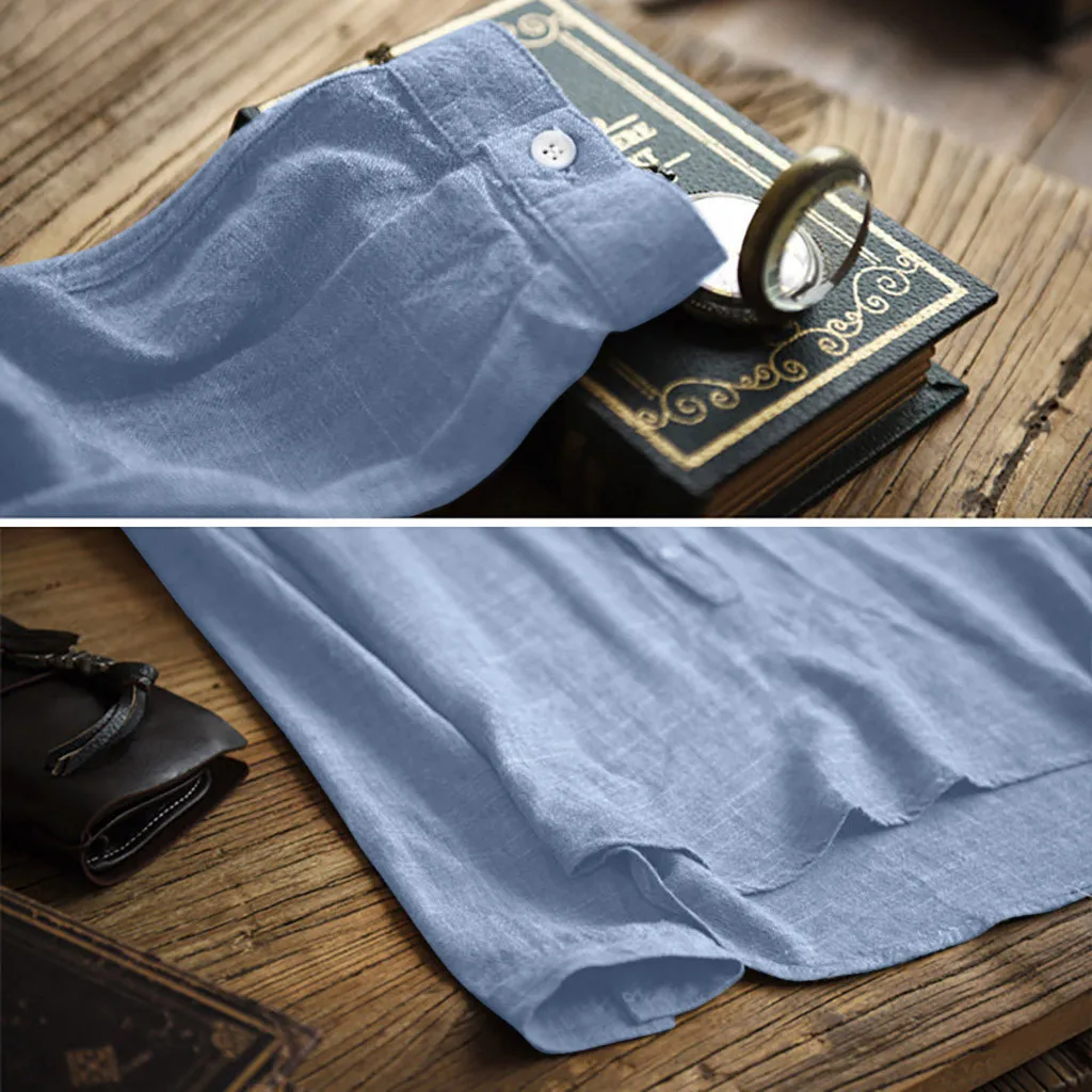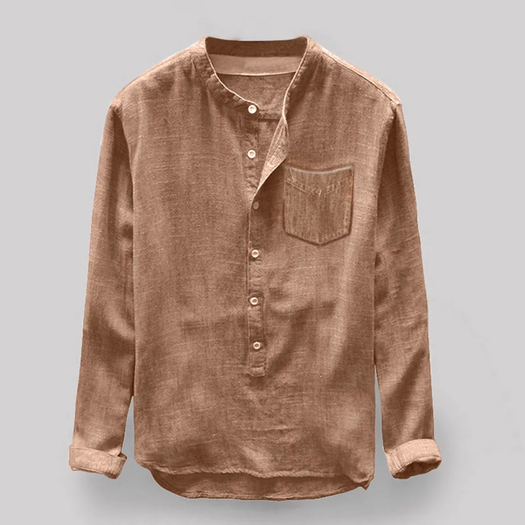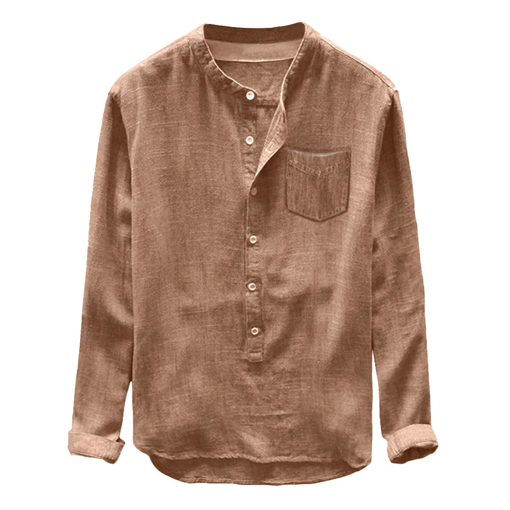 Мужской повседневный однотонный топ, осенняя модная Свободная Повседневная льняная хлопковая футболка на пуговицах с карманами и длинными рукавами, размер M-3XL, футболка 40 *