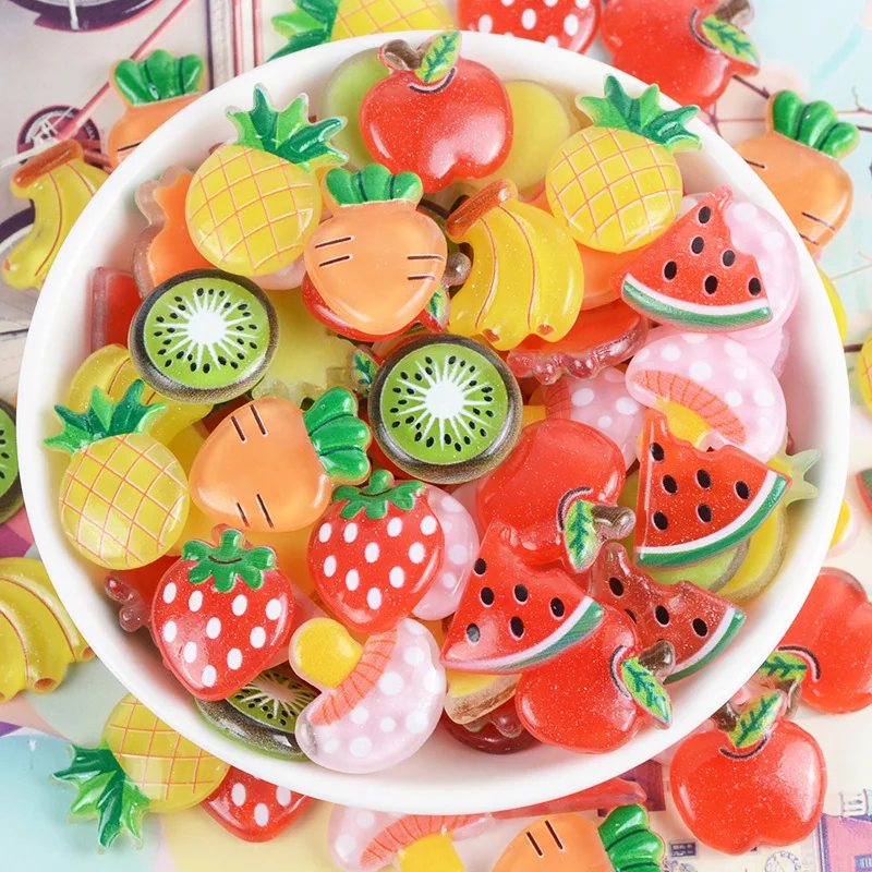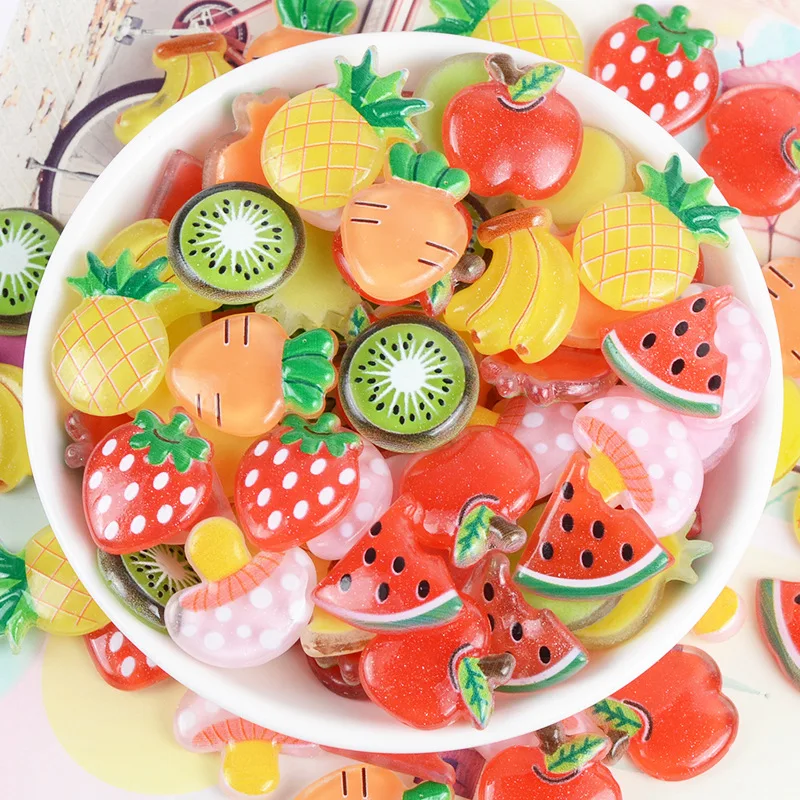 30 шт., плоское украшение из смолы, имитация фруктов, фигурки, принадлежности для рукоделия, Детские аксессуары для волос, нашивка в виде ракушки, художественное оформление