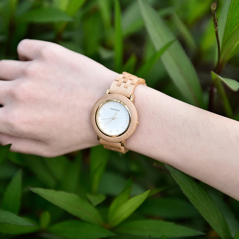 Часы BOBOBIRD женские наручные с деревянным ремешком, Роскошные, ручной работы, подарок для женщин в коробке