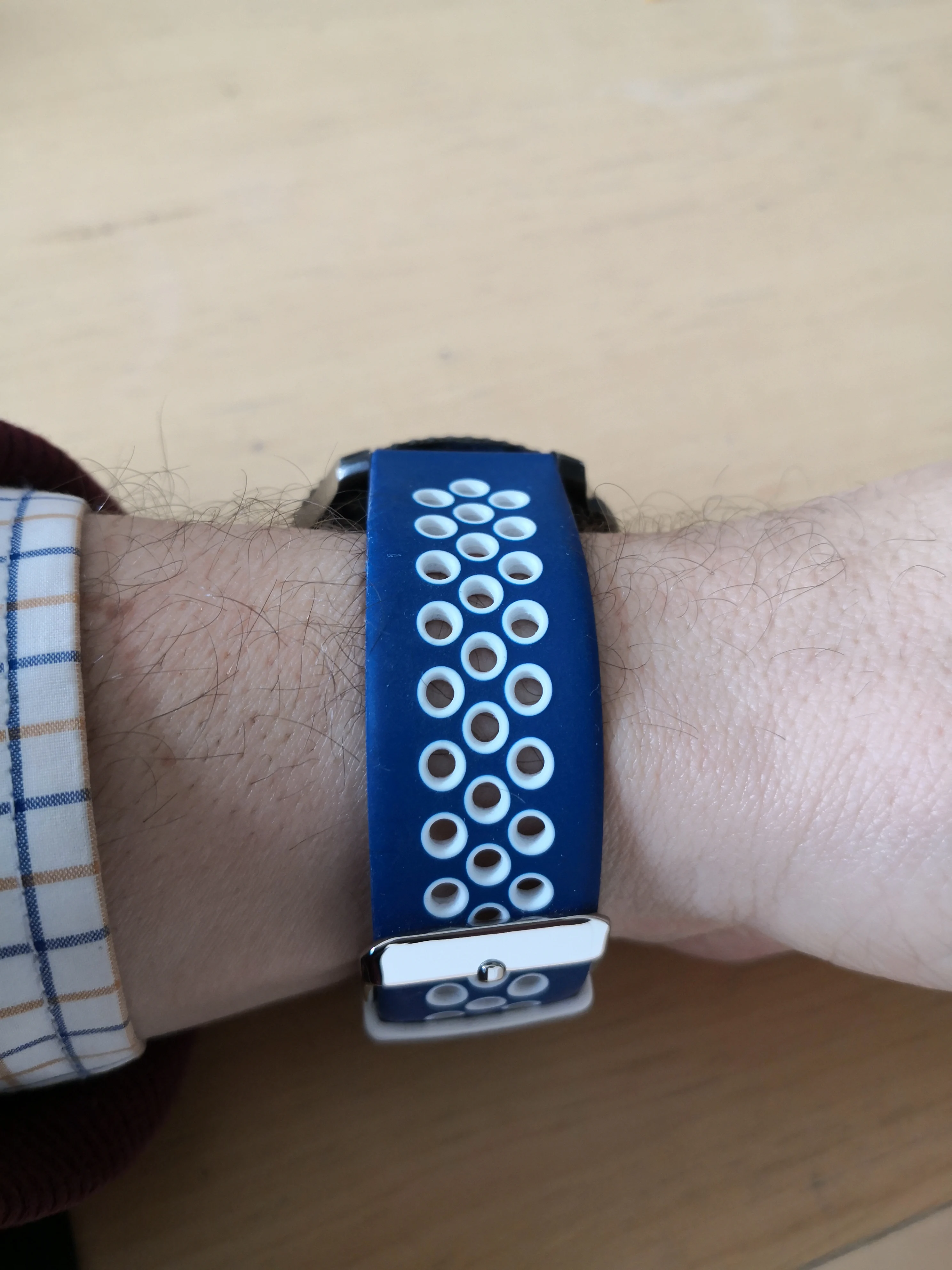 Трость идеально подходит. Пружина выглядит солидно Цвета верны Браслет действительно красивый. Есть только резина, которая имеет небольшую тенденцию ловить пыль и курсор, который не систематически прилипает к отверстиям посередине. Я оставляю пять звезд по цене, которая является более правильной!