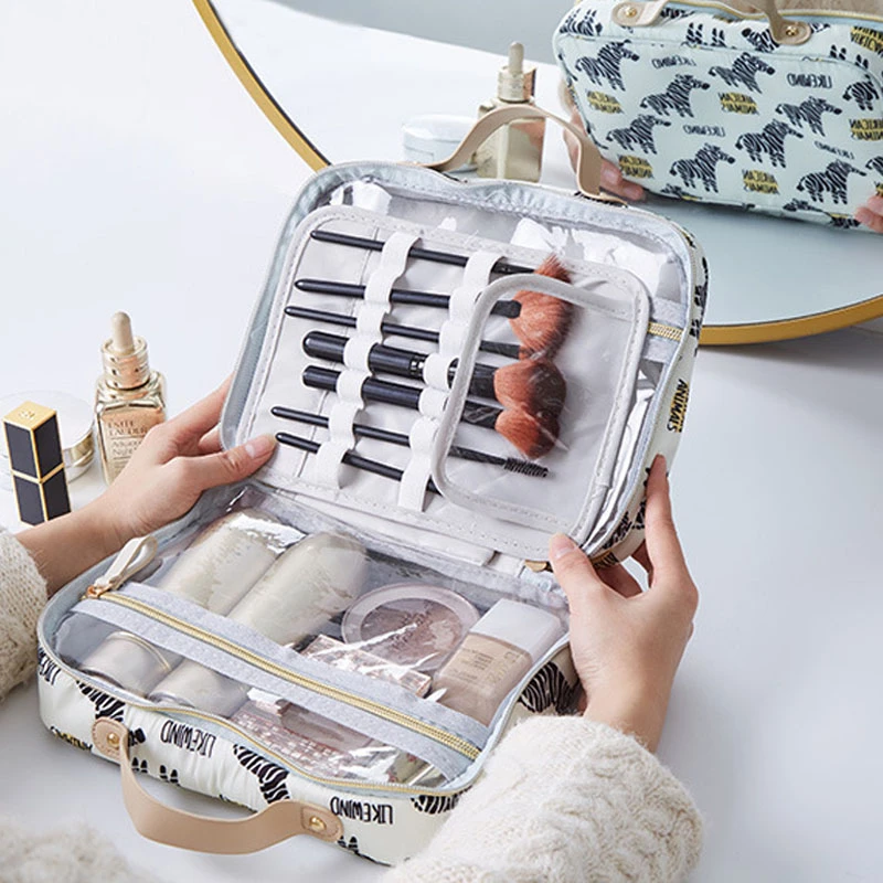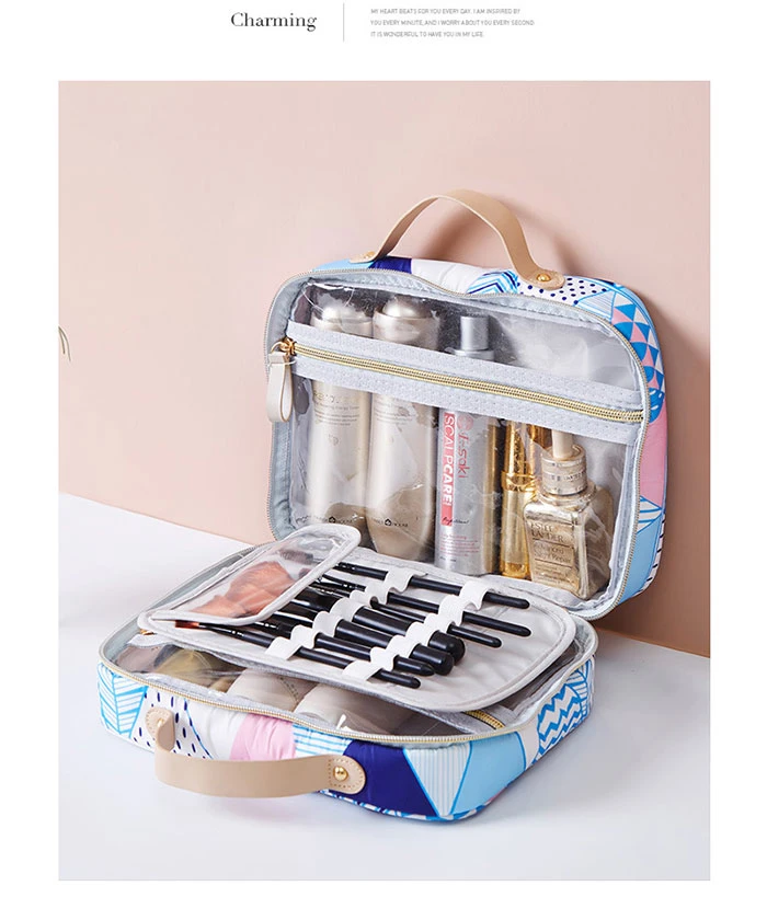 Двухслойная профессиональная сумка-Органайзер для косметики, портативная прозрачная сумка для унитаза, сумка для хранения, Новая косметика, женский набор для туалетных принадлежностей