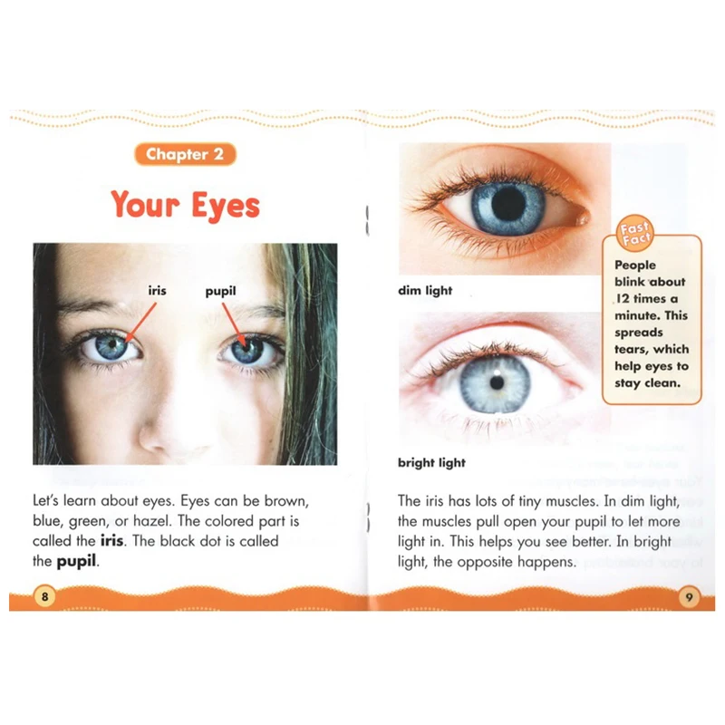 Эта серия читателей описывает шесть частей человеческого тела, направленных на улучшение способности детей читать не-фантастические предметы и помогая им улучшить свой английский лексику. Содержимое-это все знакомые части тела ребенка, которые вызывают резонанс и интерес к чтению детей: