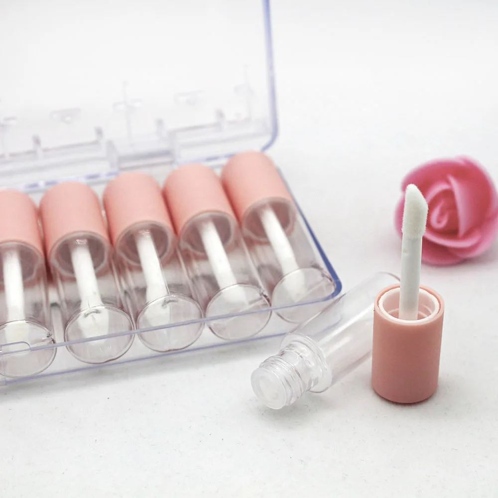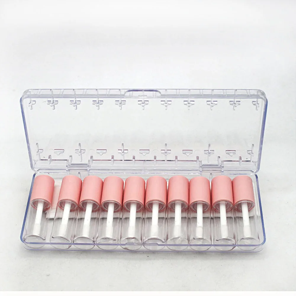 4 мл, 10 шт. в наборе, пустые тубы для блеска для губ, мини прозрачный пластиковый контейнер для блеска для губ с розовыми матовыми колпачками