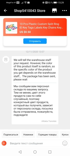 Страна: RU Доставка: Cainiao Super Economy 02.04.2021
