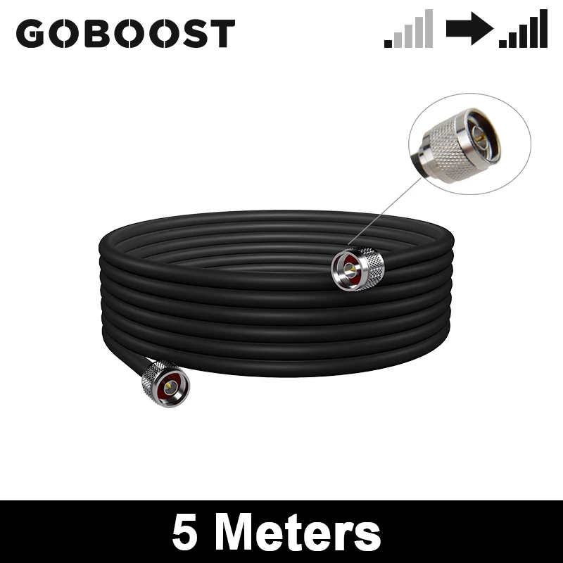 Коаксиальный кабель GOBOOST 5D, 5 метров, с разъемом N типа папа, для усилителя сигнала или антенны 2g, 3g, 4g