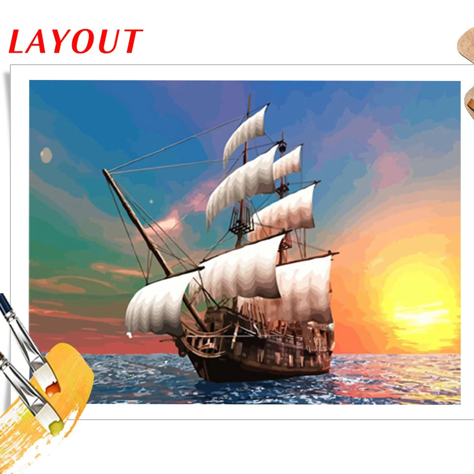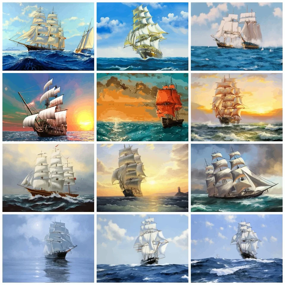 Картина AZQSD по номерам корабль Arcylic красочные по номерам пейзаж украшение на стену, живопись маслом Ручная роспись DIY подарок домашний декор