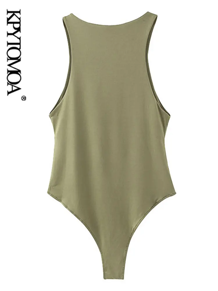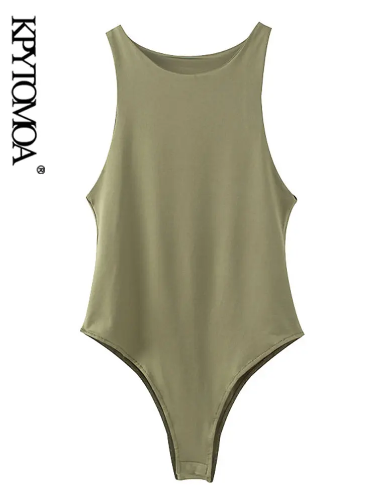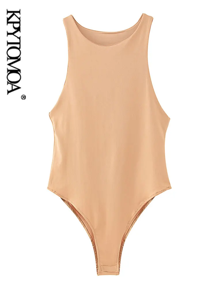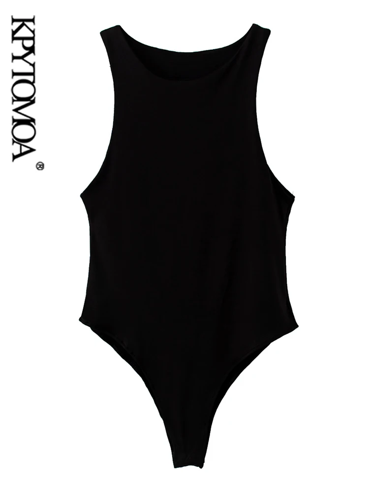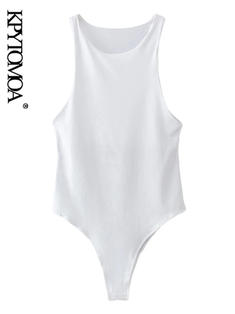 KPYTOMOA женские сексуальные модные эластичные облегающие однотонные боди винтажные женские комбинезоны без рукавов с круглым вырезом шикарные топы