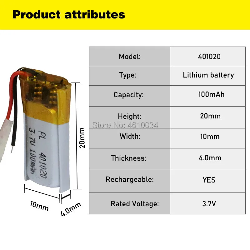 Литиевая батарея Bluetooth гарнитура 401120 401020 401220 100 мАч Мини Смарт-браслет перезаряжаемый 3,7 в полимерная литиевая батарея