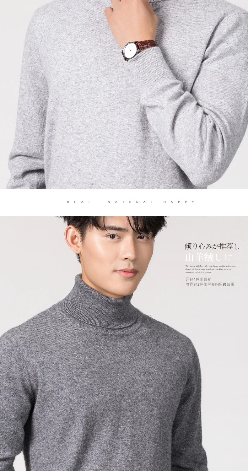 Мужская трикотажная водолазка из смеси кашемира и хлопка, Осень-зима