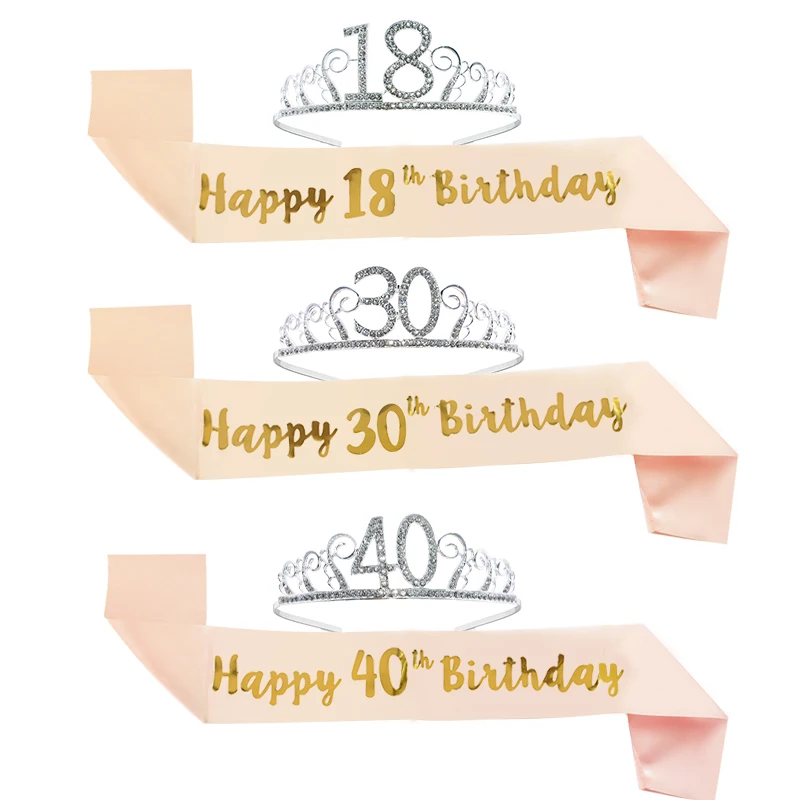 Атласная Тиара с кристаллами на ленте Happy Birthday, 18, 30, 40, 5...