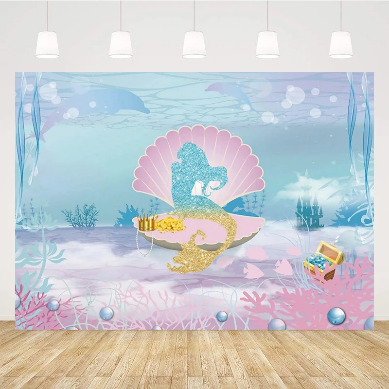 Русалка, украшение для дня рождения, Русалочка, фоновое украшение для вечеринки, украшение для детского дня рождения BR47
