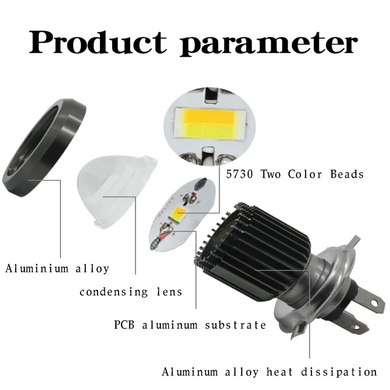 Лампа светодиодная для мотоциклетных Фар H4 BA20D H6, яркая, высокий и низкий луч, 5730 чипов, 3000 лм, 6000K, желтая, K, белая