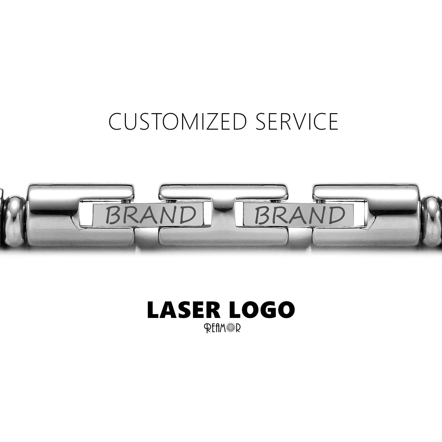 Если вам нужен большой размер, логотип можно выгравировать на средней застежке или на боковой застежке. Если вы хотите маленький размер, лучше выгравировать на боковой застежке.
