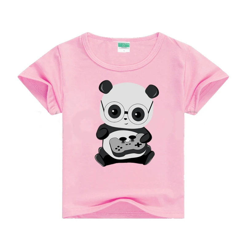 Gamer Panda/розовая футболка для маленьких девочек летняя футболка для мальчиков 2020, футболка с принтом футболки с короткими рукавами для девочек Футболка для малышей