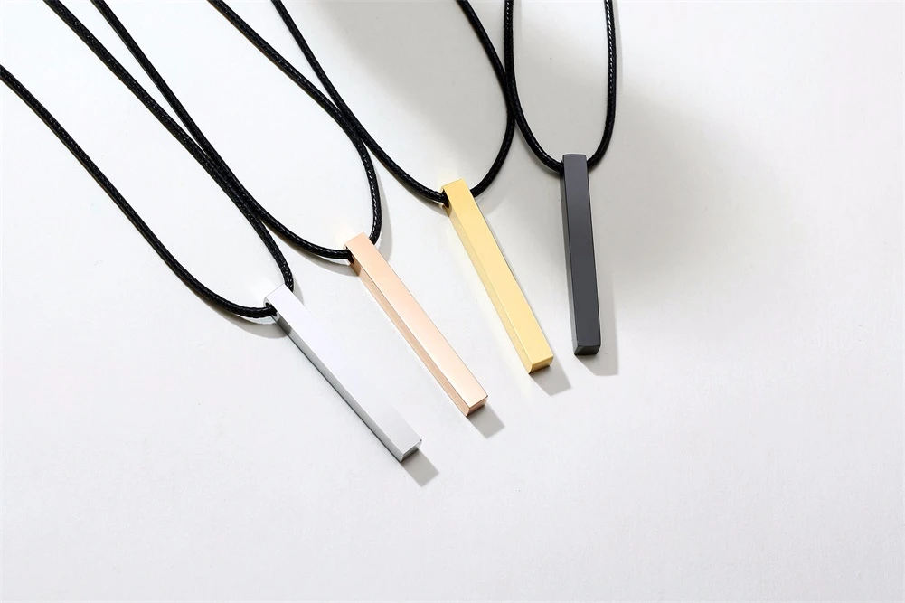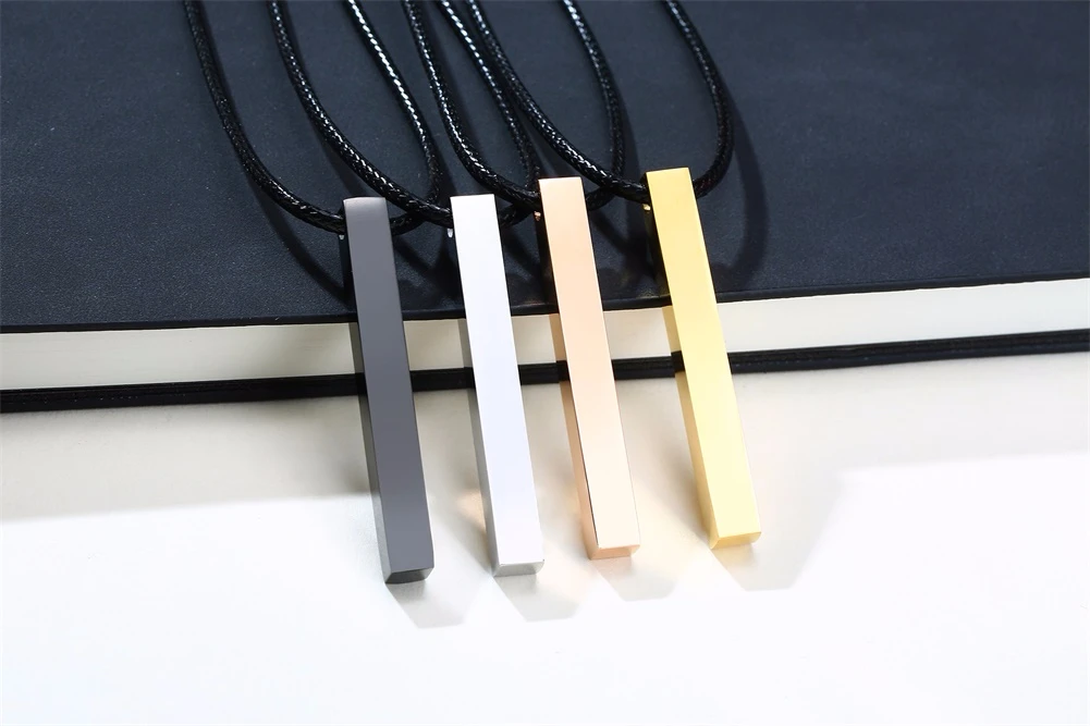 Мужской квадратный кулон подарок для Него кожаное ожерелье с четырьмя сторонами гравировка на заказ