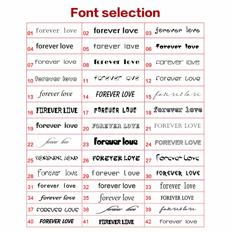 Ответ: как правило, мы используем Arial fonts. Если вам нужны другие, пожалуйста, оставьте название алфавита. Также, мы можем предоставить вам sympol на выбор.