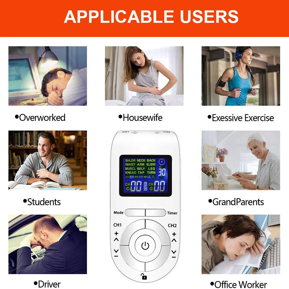 Это двухканальные импульсные массажеры, вы просто используете их около 15-20 минут на каждый сеанс, не только вы получаете преимущества облегчения боли, вы также можете стимулировать мышцы и улучшить свой фитнес, наиболее часто используется для опорно-двигательной боли