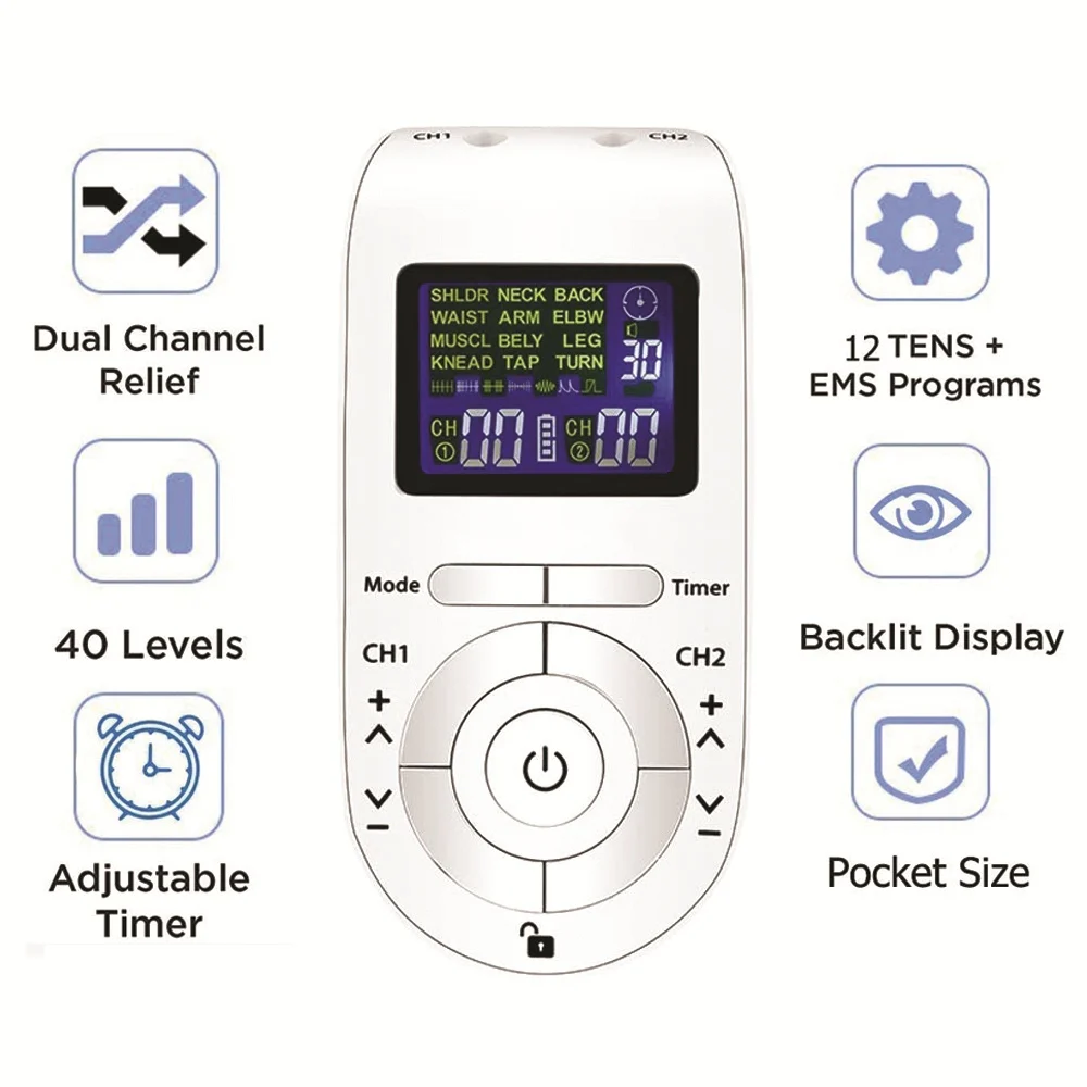Вы можете регулировать интенсивность и время, есть 40 уровень интенсивности позволяет точно настроить ширину импульса и частоту пульса, которые оптимизируют чувствительный контроль, чтобы расслабить вашу конкретную боль; предварительно запрограммированный таймер может установить предустановленную продолжительность от 10 до 60 минут
