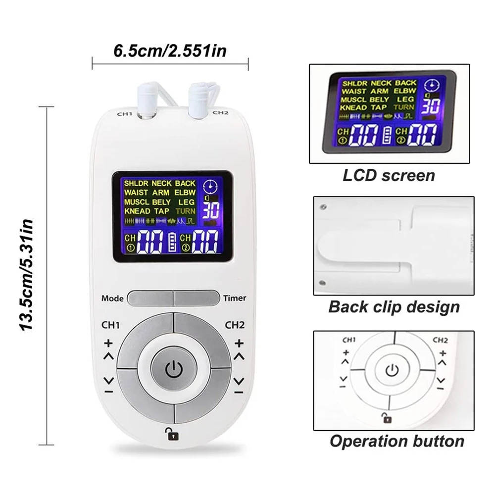 Он очень компактный и портативный, карманный и двойной выходной дизайн позволяет массировать больше частей тела в любом месте, отлично подходит для дома и офиса. Функция цифровой ЖК-подсветки делает экран четким и удобным для чтения