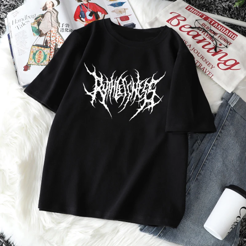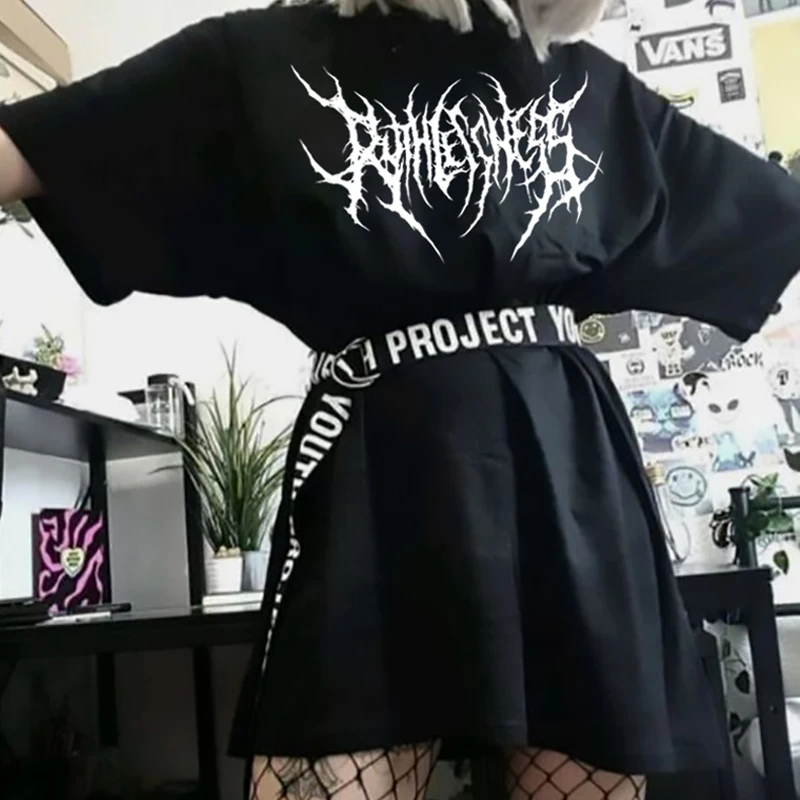Женская футболка в Корейском стиле, повседневная, с буквенным принтом kpop, панк, ольччан, винтажные свободные топы в стиле хип-хоп, черная, готика, Харадзюку