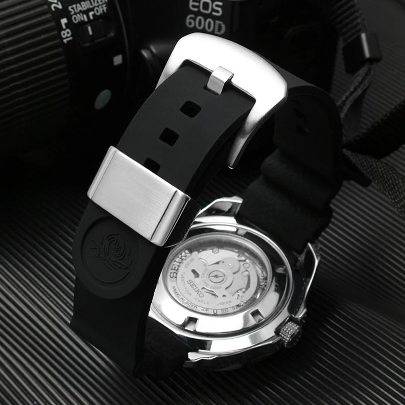 Ремешок резиновый черный для часов Seiko, 22 мм