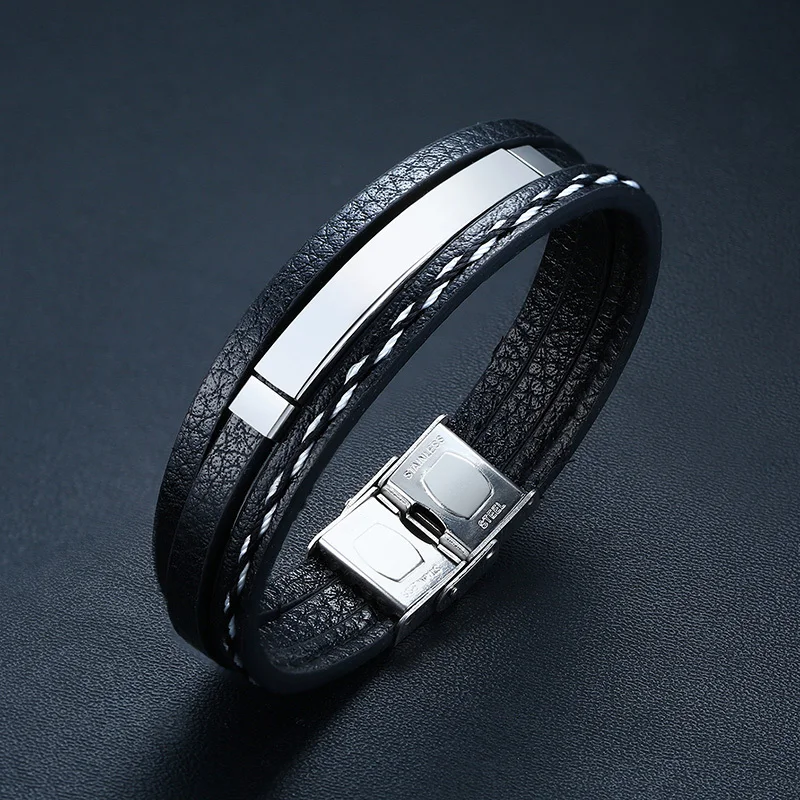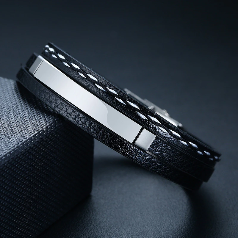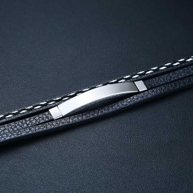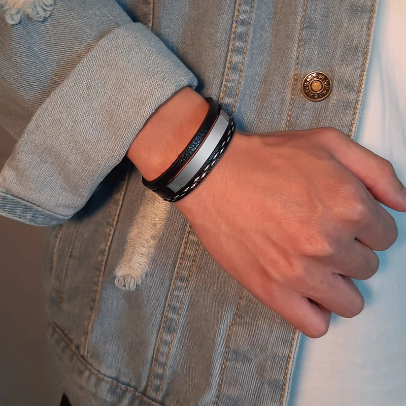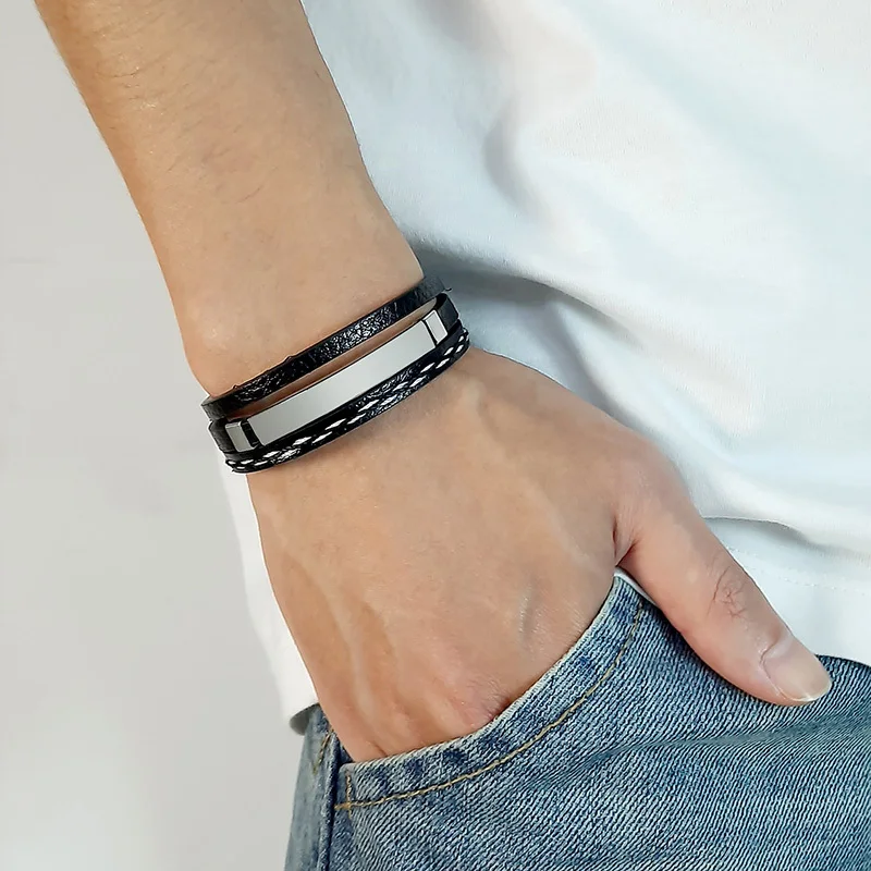 Тонкий мужской кожаный браслет на заказ, идентификационная бирка из...