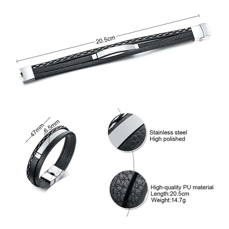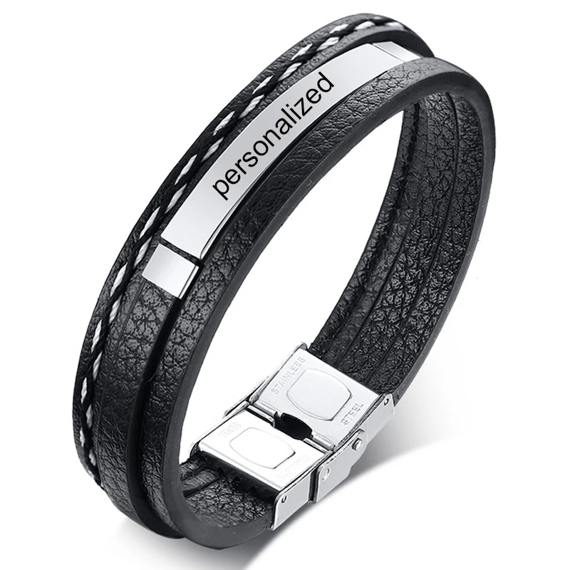 Браслет мужской кожаный многослойный, с гравировкой имени и даты, индивидуальный подарок для папы и отца