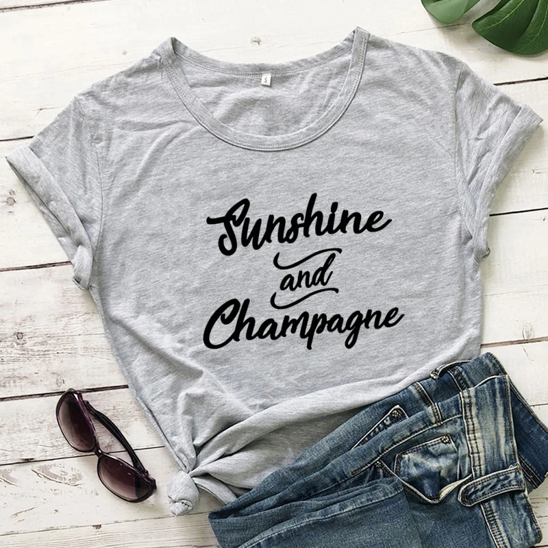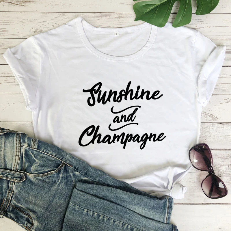 Футболка с принтом солнце и шампанское, забавная Женская футболка для пляжной вечеринки, Повседневная летняя футболка с коротким рукавом