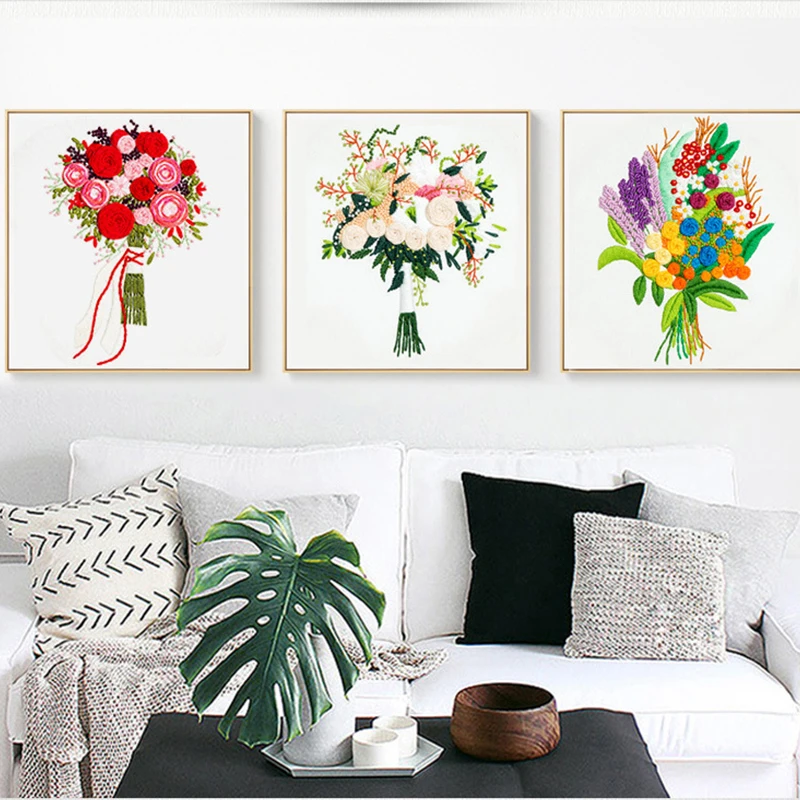 Набор для 3D вышивки букета, для начинающих, сделай сам, вышивальные принадлежности, обруч, материалы для рукоделия посылка швейный Декор картин