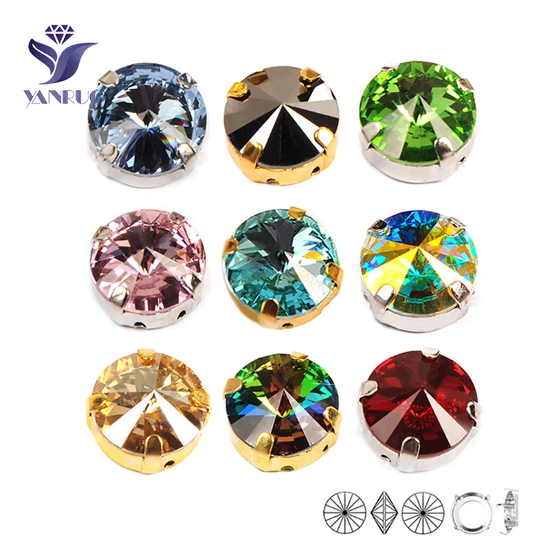 YANRUO 1122 Rivoli, стеклянные кристаллы всех цветов, шатон, круглые бусины для Стразы своими руками, пришитые камни, камни для шитья платья