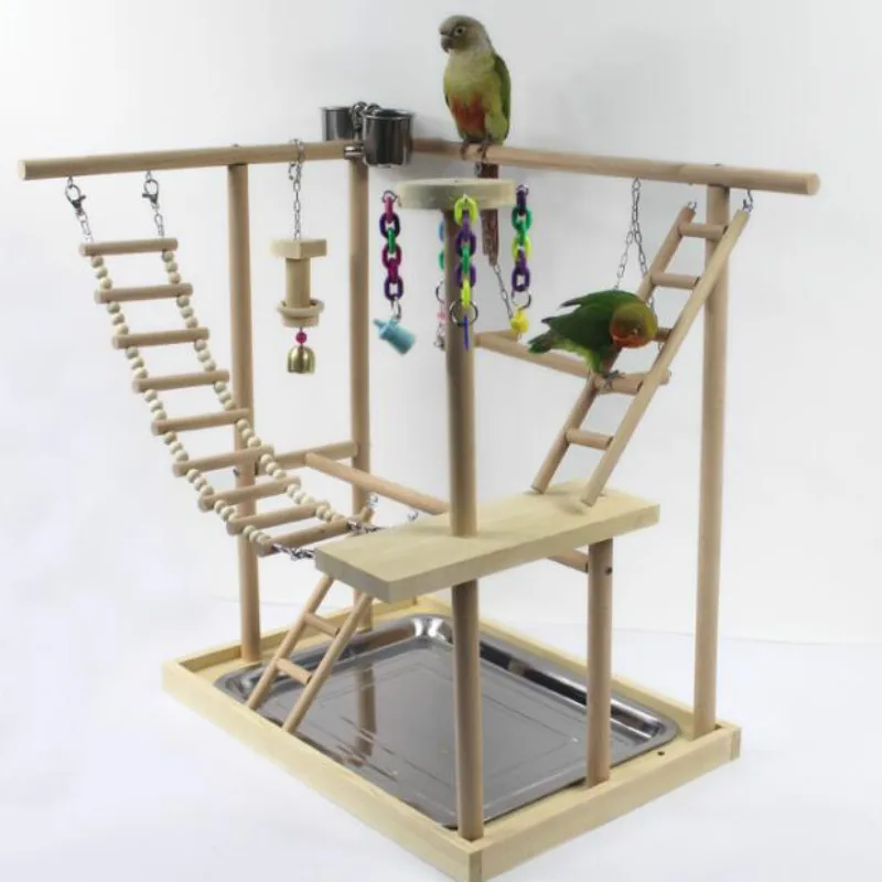 Деревянная игровая площадка для попугая, жердочка для птицы с лестницей, кормушка, игрушка для кусания попугая, рамка птица, подставка, клетка, подвесной мост для птиц, WJ51228