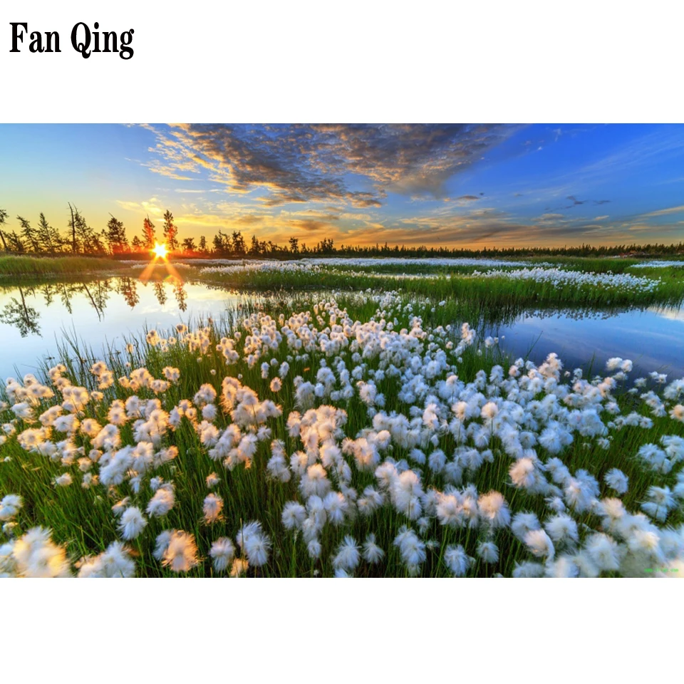 Полностью квадратная/круглая дрель 5D DIY Алмазная картина "Одуванчик закат пейзаж" 3D вышивка крестиком 5D домашний Декор подарок