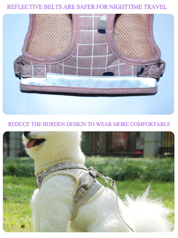 Поводок для собак, дышащий сетчатый жилет, регулируемый поводок для собак и поводок, набор для маленьких собак, Светоотражающий ошейник для домашних животных, товары для домашних животных