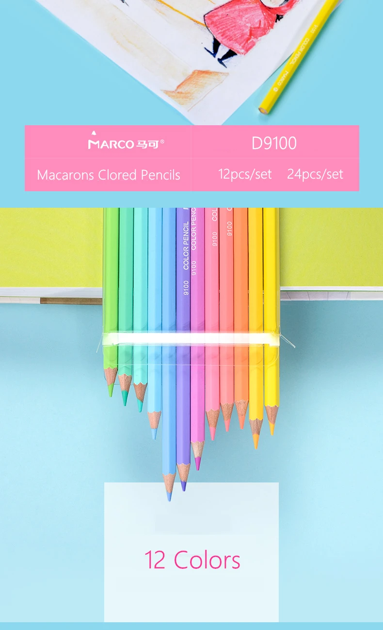 Marco D9100 12/24 шт./компл. новые мягкие Модные Пастельные цветные карандаши нетоксичные цветные карандаши Макарон для школьников