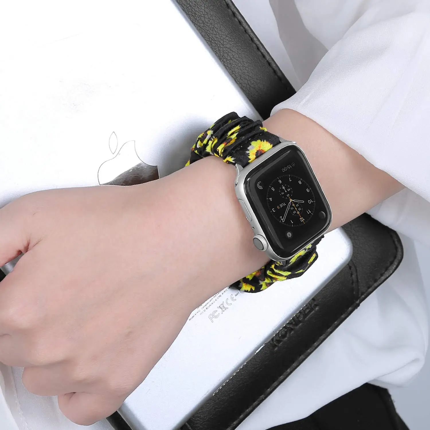 Эластичный ремешок для часов apple Watch 5 4, ремешок 44 мм, 40 мм, ремешок для часов correa apple watch 42 мм, 38 мм, женский ремешок для часов iwatch pulseira 3 Материал: хлопок, полиэстер, нержавеющая сталь. Свободная длина ремешка для часов составляет около 15,3 см, что немного свободнее, если у вас меньшее запястье. Новый дизайн: эта резинка для волос-идеальный аксессуар для ваших часов, брелка или галстука для волос. Толстая резинка идеально подходит для вашего размера запястья, есть также множество классических принтов на ваш выбор. Совместимые модели: совместимы с Apple Watch 38 мм/40 мм/42 мм/44 мм. Персонализируйте свои часы с помощью этого изысканного сменного браслета. (Обратите внимание: без часов!) Простая установка: эластичный ремешок для часов Apple разработан с двойной кнопкой страхования складывания застежки с обеих сторон. Поставляется с изысканными стальными соединителями, которые легко снимать и устанавливать, точно и надежно фиксируют ваши часы. Посылка входит: 1 ремешок для часов (часы apple не входят в комплект)
