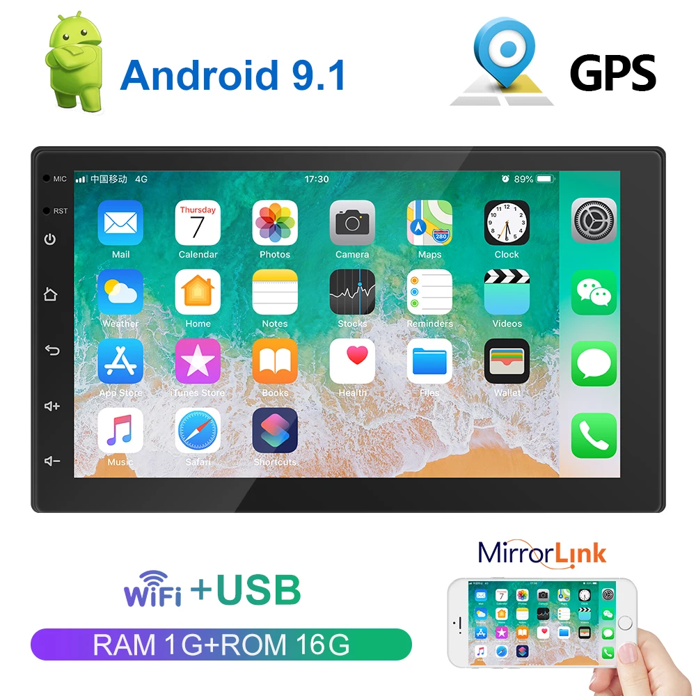 Podofo Android 9,1 2 Din GPS Автомобильное стерео радио 7 ''сенсорный экран автомобильный MP5 плеер мультимедийный плеер авторадио Зеркало Ссылка