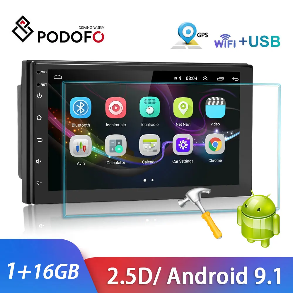 Автомагнитола Podofo, 2 Din, Android 9,1, GPS, 7 '', 2.5D, mp5-плеер, мультимедийный плеер, Авторадио для Volkswagen, Nissan, Hyundai