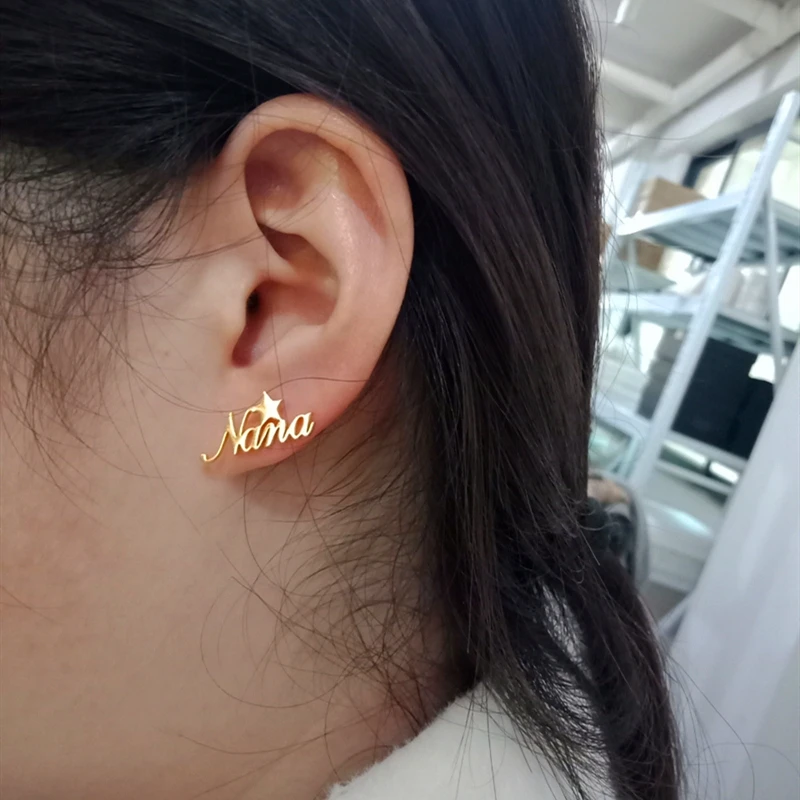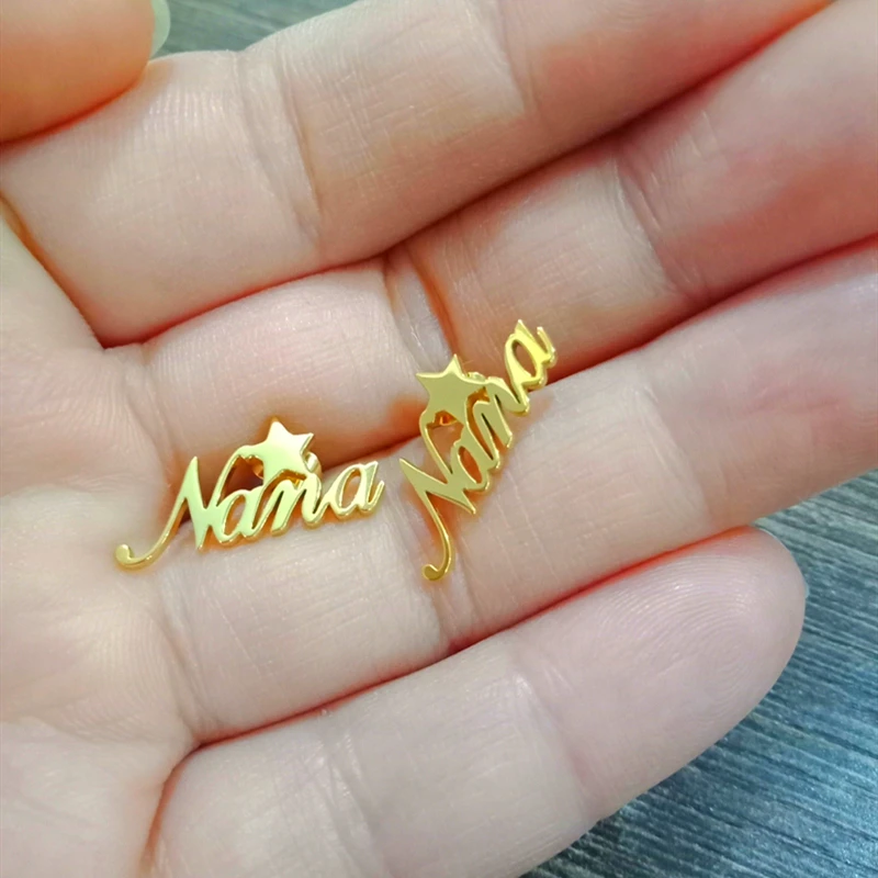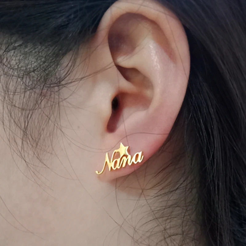 Женские серьги-гвоздики с именем в виде звезд, персонализированные ювелирные украшения на заказ, корона, Бабочка, месяц, сердце, подарки на день рождения серьги